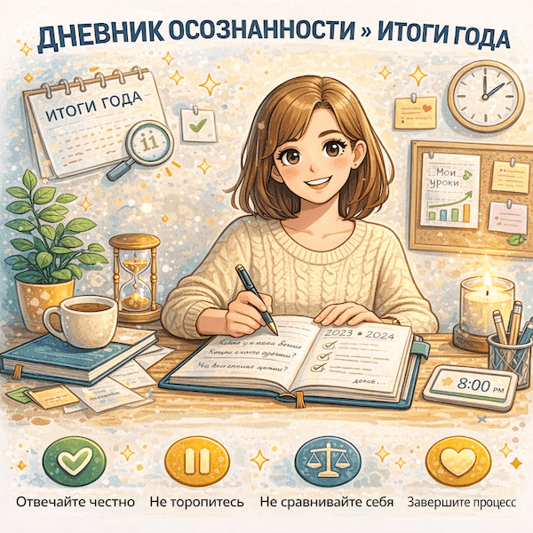 Это структурированный дневник, который поможет осмыслить прожитый год.