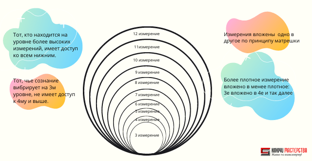 Те, кто вибрируют на уровне 3-Д, не имеют доступа к 4-му измерению. Те, чье сознание находится на 4-м уровне, не имеют доступа к 5-му, и т.д.